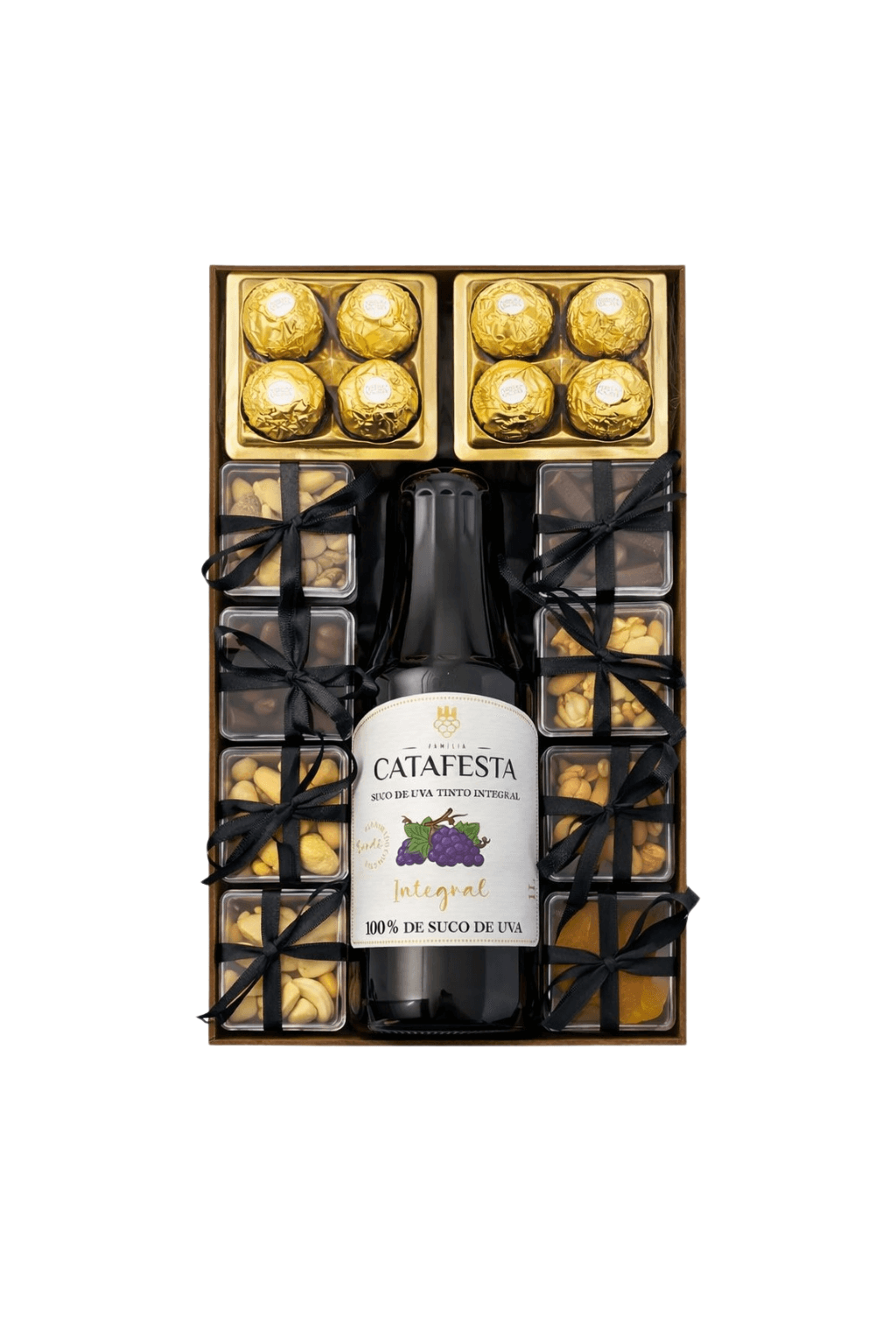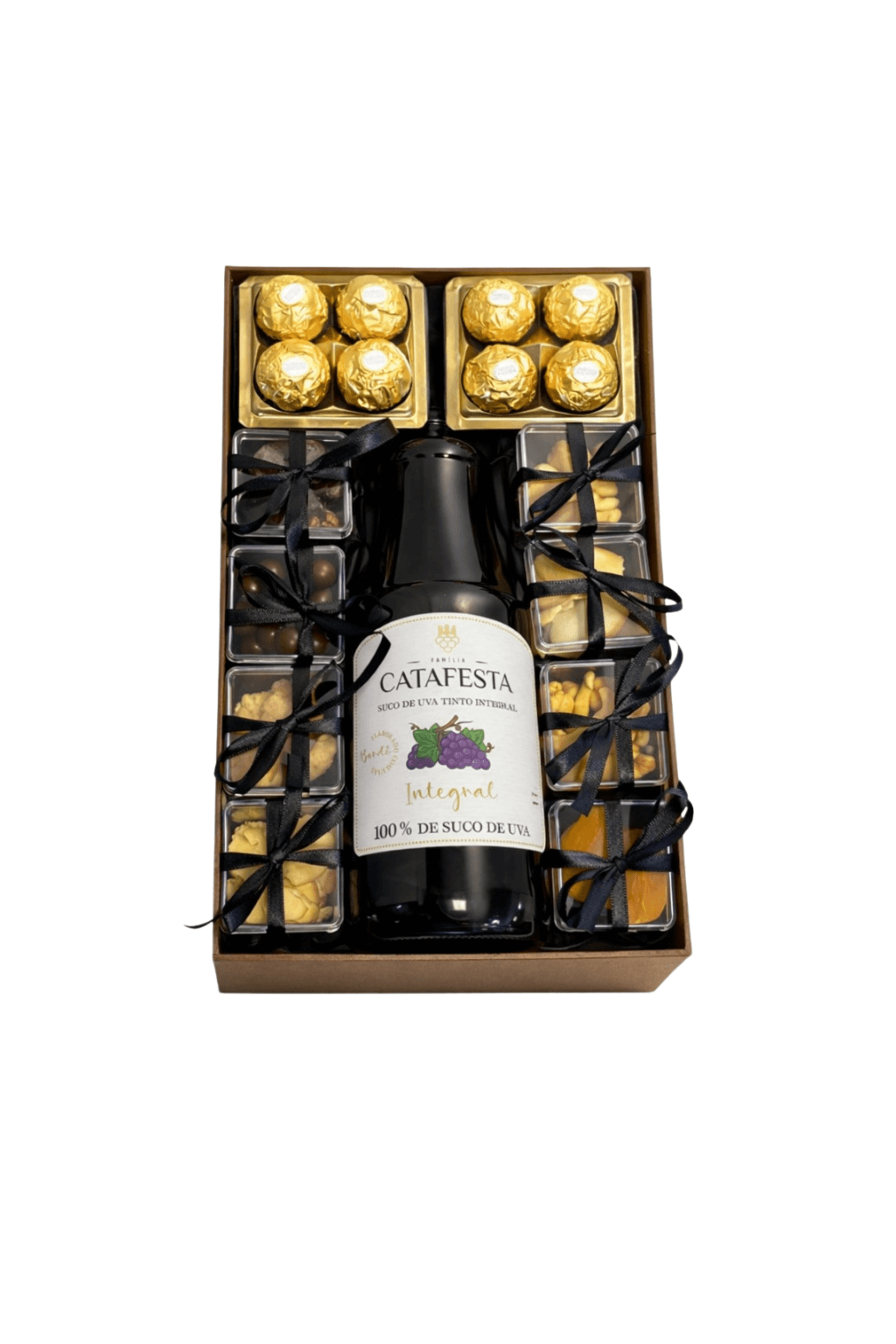 Esta Box Gourmet é um verdadeiro Luxo! Pensada para impressionar em cada detalhe, essa box reúne uma seleção sofisticada de sabores e apresentação impecável. O destaque fica por conta do suco de uva integral premium, acompanhado por chocolates finos e uma variedade de snacks cuidadosamente escolhidos, todos organizados em uma composição elegante e harmoniosa.