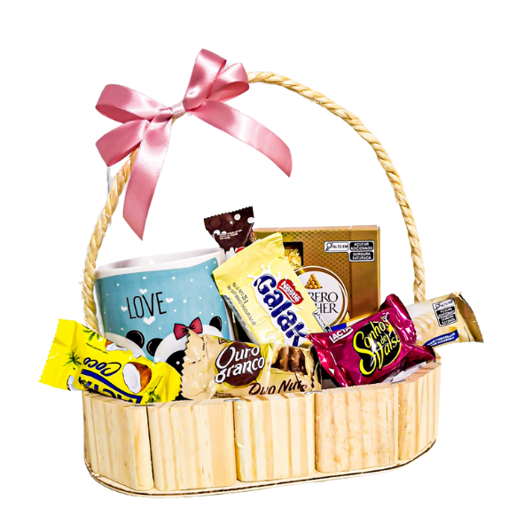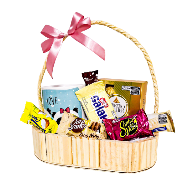Querendo surpreender alguém especial? Nossa Cesta de Chocolates + Caneca Love é o presente que fala por você! Um mimo recheado de delicias e muito carinho que vão transformar o dia dessa pessoa tão querida.