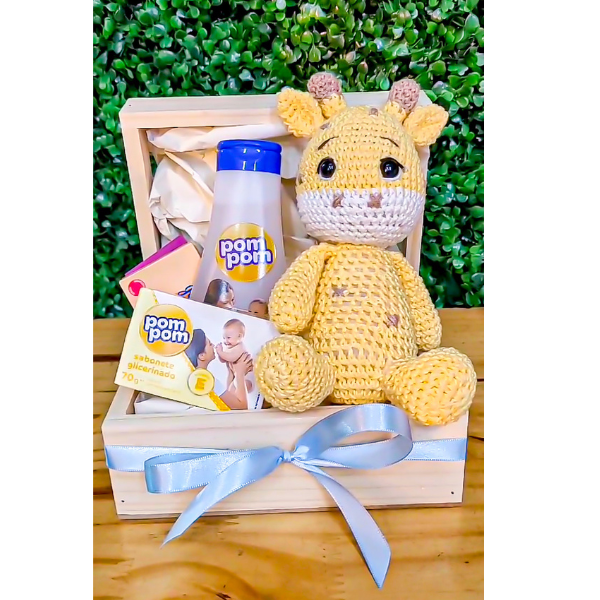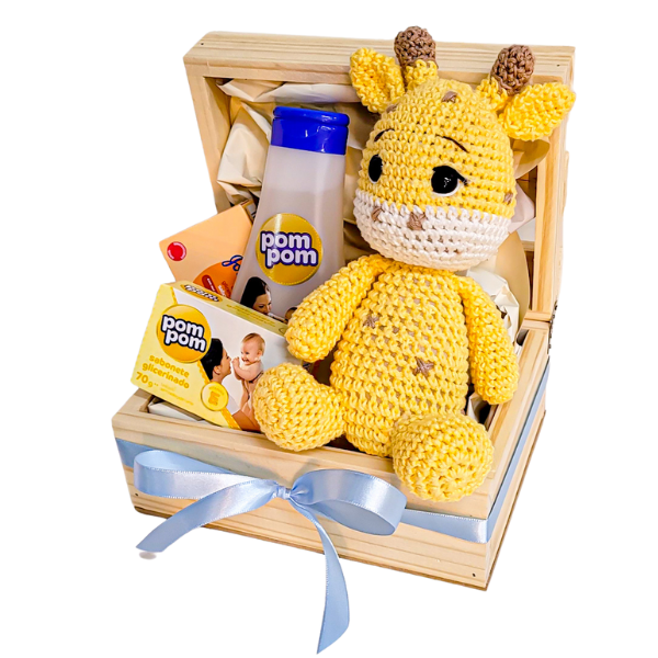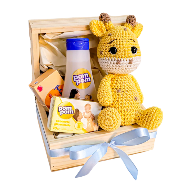 Quer desejar boas vindas a esse bebê tão amado? Aposte em nossa cesta maternidade. Essa cesta combina a fofura de uma girafa em amigurumi com o cheiro e toque suave desses sabonetes, criando uma experiência única e cheia de emoção, alegrando o dia dessa mamãe e papai tão queridos.