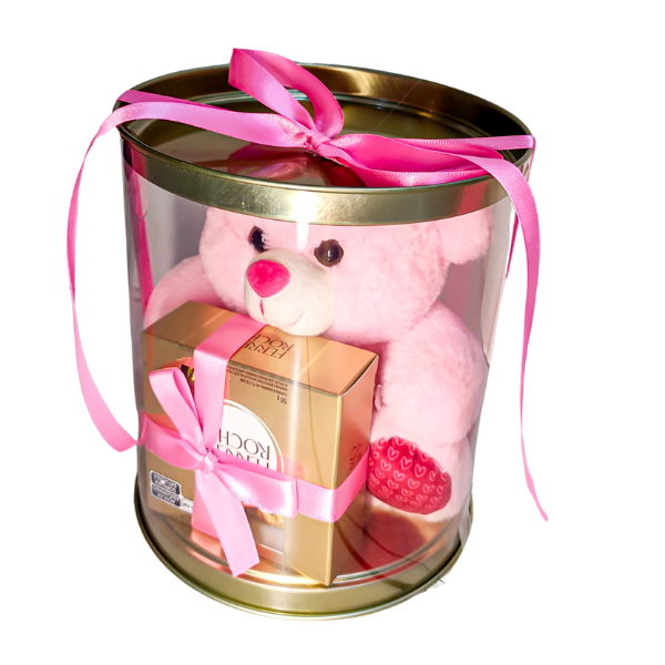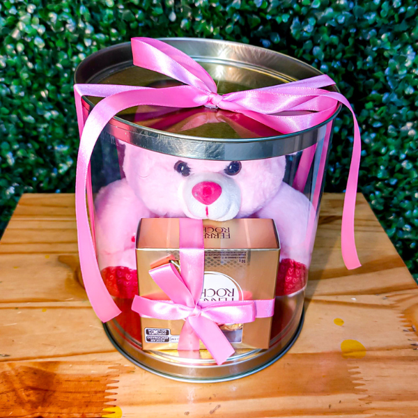 Kit Pelúcia Rosa + Ferrero Rocher na Lata