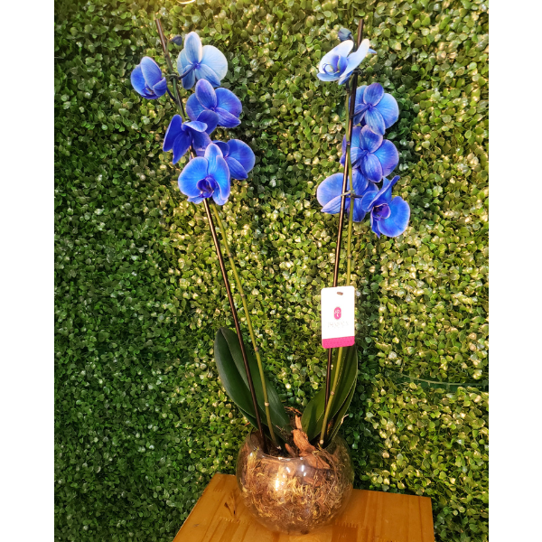 Surpreenda com a beleza da orquídea azul! Cultivada com carinho, essa flor exótica simboliza harmonia e admiração. A combinação com o vaso de vidro realça ainda mais sua sofisticação, tornando-a o presente perfeito para momentos especiais.
