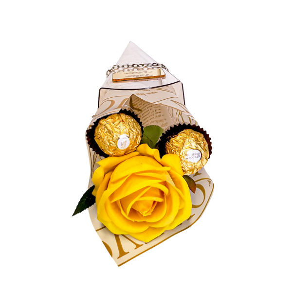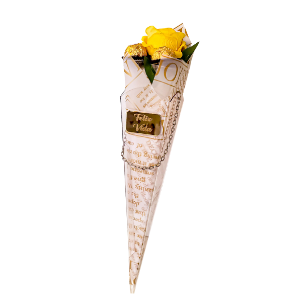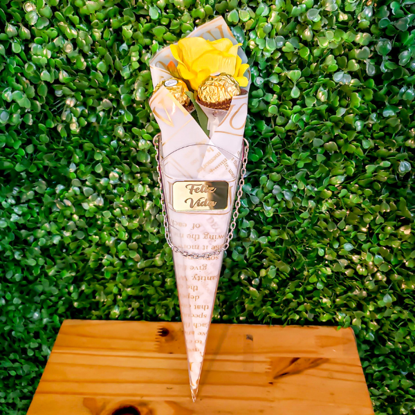 Rosa Unitária com 2 Ferrero no Cone de Acrílico